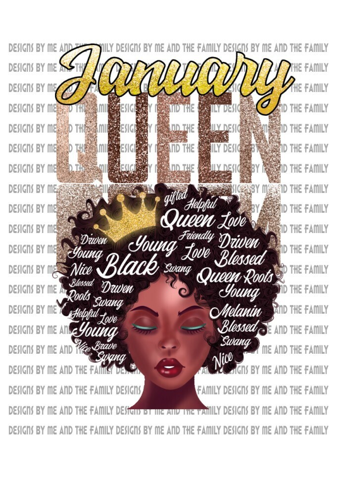 January, A Queen is born, a strong Black Woman, Gifted, Driven, Helpful, Blessed, Sublimation, PNG